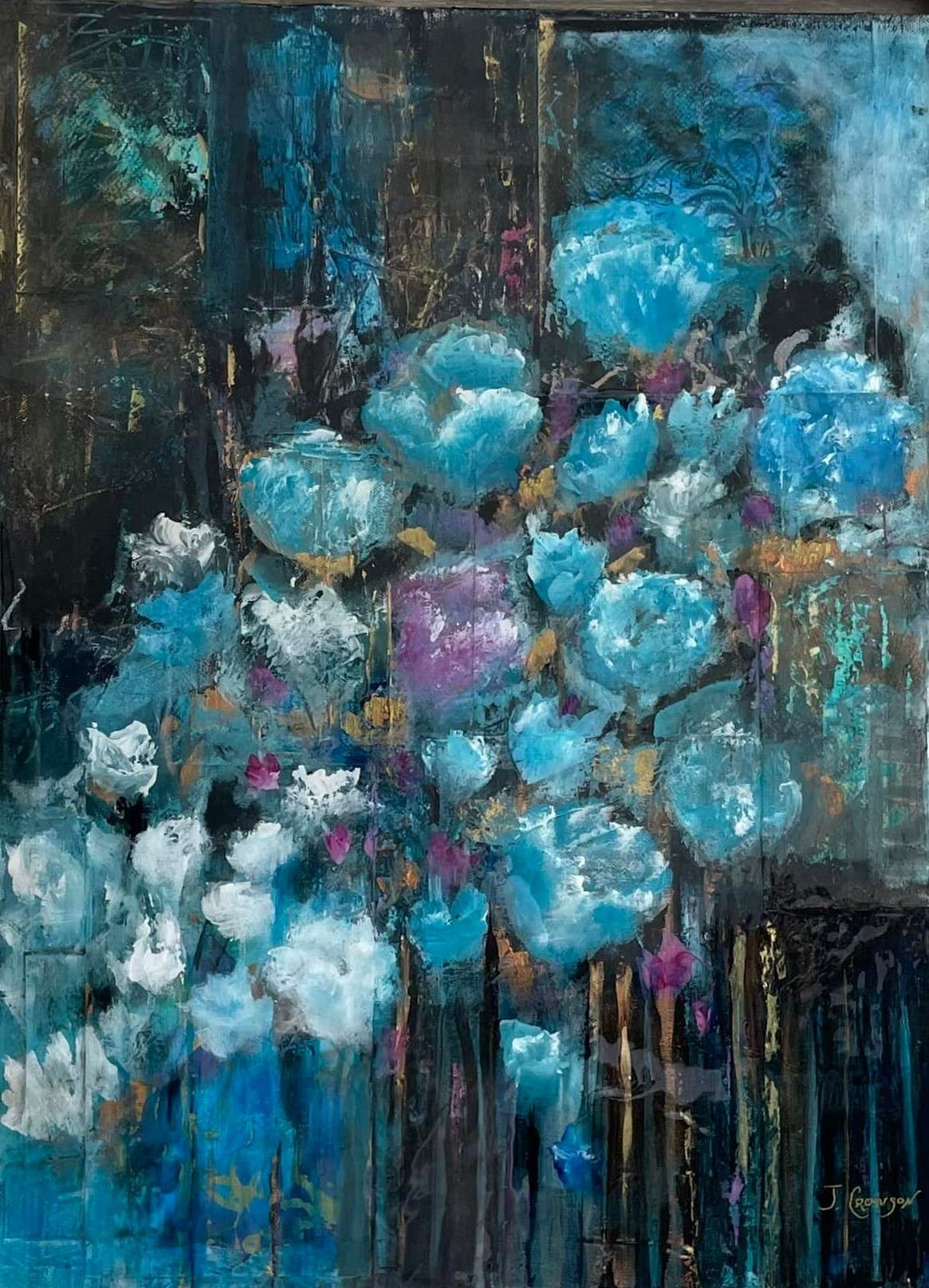 JoAnne’s art career blossomed after she retired from the corporate world. She fell in love with the creative process and the joy experienced when a piece has been completed. She becomes completely immersed in the painting, waiting for the story to emerge, and trying to do the story justice. Sometimes the canvas will toy with the intuitive artist, presenting challenges and surprises along the way. The success of the painting will depend on the patience of the artist to coax the painting into becoming the beautiful soul in the artist’s mind. JoAnne’s goal is always to connect others to the emotions of curiosity, excitement, danger, and peace through the color and movement on her canvas.