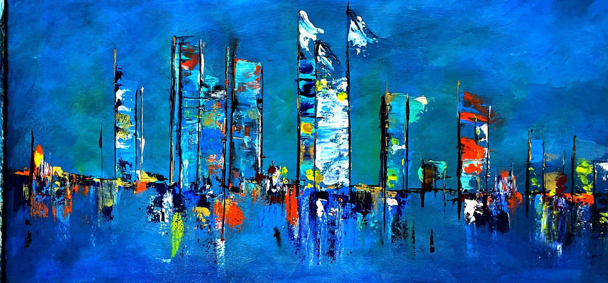 JoAnne is an abstract/impressionist artist based in Naples, FL who works in a free and intuitive approach letting the painting emerge through the color, movement, and lines applied to the canvas until the emotions of the piece emerge. Color is a powerful tool in invoking emotions on canvas and JoAnne couples the use of color with the music playing in her studio to maximize the energy of the piece. Her goal is to invoke an emotional response from her work based on vivid color, composition, and harmony. Each viewer’s response to JoAnne’s abstract work may differ slightly based on their individual experiences. Such is the wonderful concept of abstract art!