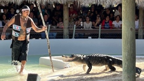This year on History and Heritage Row, in front of the Museum at Everglades City’s Annual Seafood Festival, we will again focus on our partnership with the local indigenous tribe of Miccosukee Indians. Several artisans from the Tribe will have their clothing and jewelry creations for sale. There will also be an ongoing traditional cooking demonstration along with an alligator wrestling exhibition by our local Indigenous Alligator Wrestling Team. Collier County Museums will have an information booth with kids’ activities, and the museum will be open for visitors to enjoy and explore the current Sharing the Path exhibit in the front gallery and our permanent exhibits (including the 1929 Harley-Davidson motorcycle) in the back.