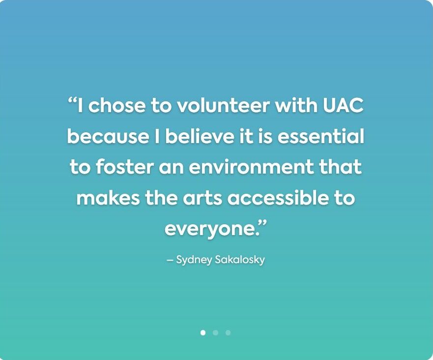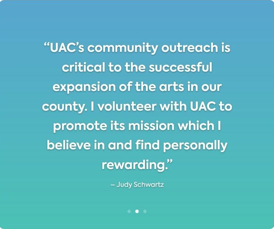 Volunteering allows you to not only connect to your community and support the arts, it offers a chance to be part of something bigger. Your help extends the reach of UAC to positively impact the lives of those we serve in our community and connect with others who generously care. To learn more about the incredible ways the arts benefit us as individuals and the communities we constitute, click here. The arts make a real difference and so can you!